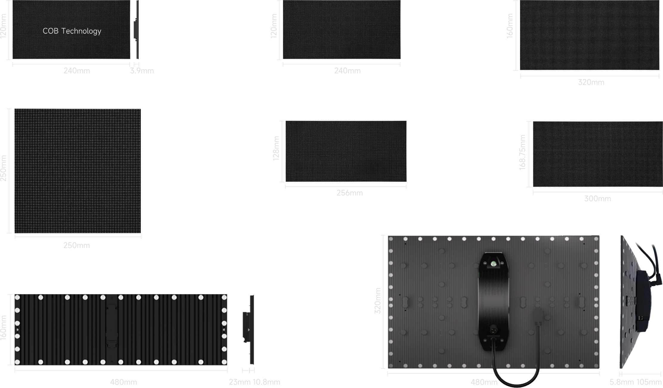 Cabinet Size (mm):240×120 / 320×160 / 250×250 / 256×128 / 300×168.75 / 480×160 / 480×320