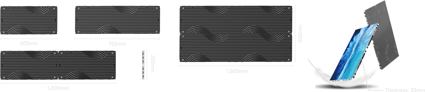 Standard Cabinet: 2×1 / 3×1 / 4×1 / 4×2; Double-Sided Cabinet: 2×1 / 3×1 / 4×1 |